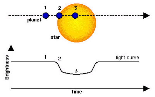 Von einem planetaren Transit spricht man, wenn ein Planet auf seiner Kreisbahn um den Stern von der Erde aus gesehen vor seinem Stern vorbeizieht. Während dieses Transits verdeckt der Planet einen kleinen Teil des Sterns und es kommt zu einem kurzen, periodischen Helligkeitsabfall der Intensität des Sternlichts (Abbildung 1).