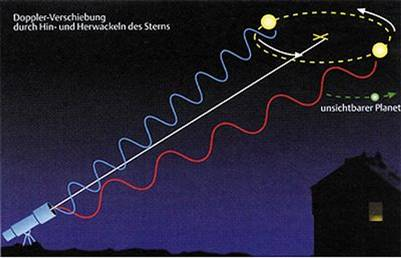 Eigentlich kreist ein Planeten nicht um den Zentralstern. Tatsächlich kreisen sowohl Planeten als auch Sterne um den gemeinsamen Schwerpunkt des Systems, dem Baryzentrum, welcher allerdings durch die viel größere Masse des Sterns sehr nahe am Stern liegt. Das führt allerdings dazu, dass der Stern nicht still steht, sondern um diesen gemeinsamen Schwerpunkt mit der gleichen Periode wie der Planet kreist. Das heißt, der Stern kommt – von der Erde aus gesehen – abwechselnd auf den Betrachter zu und bewegt sich dann wieder von ihm weg.