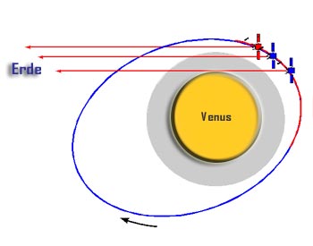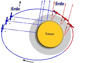 Rauhigkeit und des chemischen Aufbaus der Venus-Oberfläche mittels der Reflektion der Radiowellen an der Oberfläche (bistatisches Radarexperiment).