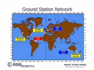 Zu den Bodenstationen gehören die neuen Antennen der ESA in Perth (Australien, 35 m) und in Cebreros (Spanien, 35 m) und auch das Deep Space Network (DSN) der NASA (34 m und 70 m) mit Antennenkomplexen in Californien, Spanien und Australien. Wenn die Raumsonden für die Bodenstationen sichtbar sind und die Hochgewinn-Antenne (HGA) der Sonde zur Erde hin gerichtet ist, können die Entfernung und die Dopplerverschiebung der Trägerfrequenz und damit die radiale Geschwindigkeit der Raumsonden bestimmt werden.