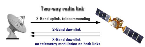 Die Geometrie der Messung hängt von dem jeweiligen wissenschaftlichen Nutzen ab. Bei Schwerefeldmessungen zeigt die Hochgewinnantenne der Raumsonde zur Erde, so dass kleine Änderungen in der Flugbahn der Raumsonde durch die gravitative Anziehung eines Körpers (Planet, Mond, Komet oder Asteroid) sichtbar werden (s. Fig. 1).